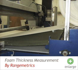 Traditional thickness measurement is preformed on a sample of a foam sheet on a surface table using a mechanical probe per ISO 1923 or ASTM D3574. RangeMetrics offers real-time in-process measurement using non-contacting distance sensors. These systems can be used on loopers, slitters and rebond lines.